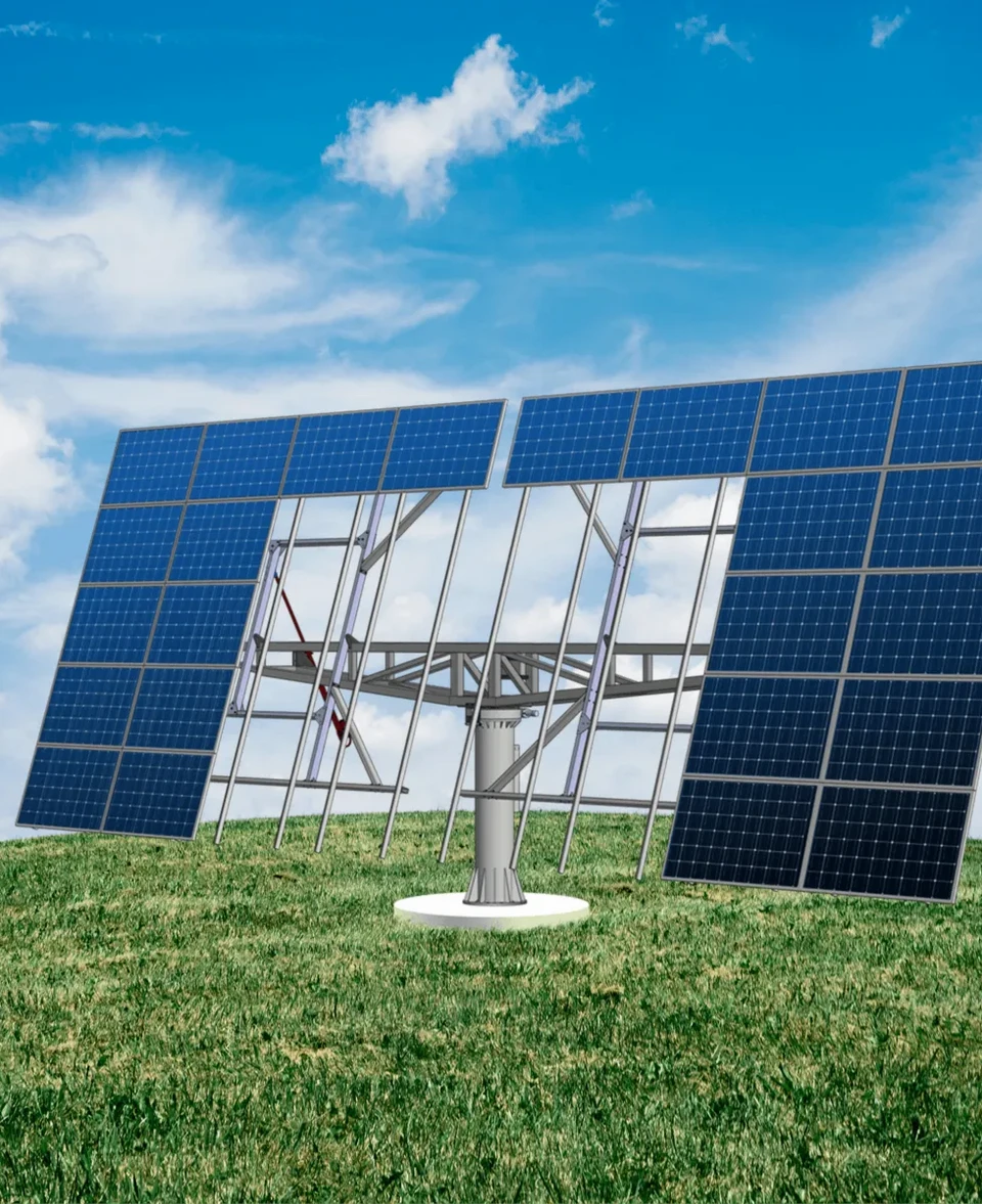 We have developed standalone, rotating solar solutions that follow the sun from morning to evening. This means up to 70% more energy production than standard fixed solar panels. We have solutions from 10 to 80 panels.